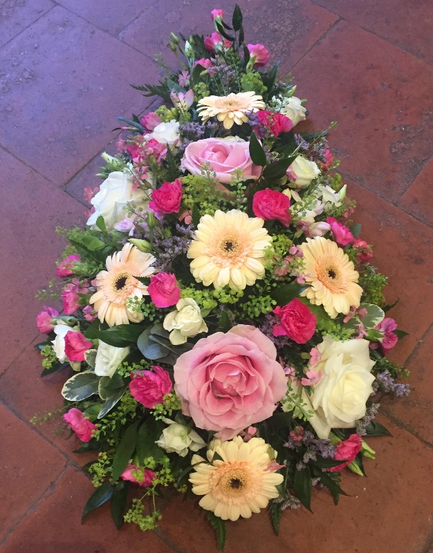 A beautiful tear drop/single ended spray using a soft shades of pastels