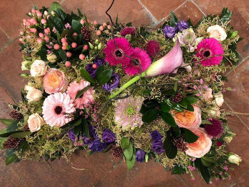 Groups of flowers form the basis of this design along side recessed flowers and manipulated stems. Full of colour and flowers that is visually amazing.