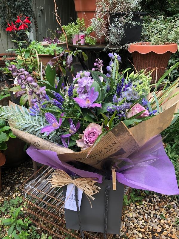 Lavish Lilac Bouquet is all about the purples!! A great mixed selection of seasonal purple and lilac flowers, mixed with natural grasses and green foliage add stylish texture to the design, beautifully complimenting the pretty flowers. Modern and luxurious, my Lavish Lilac Bouquet is lovingly hand-tied and wrapped in my signature style, finished in a Town Garden presentation bag.