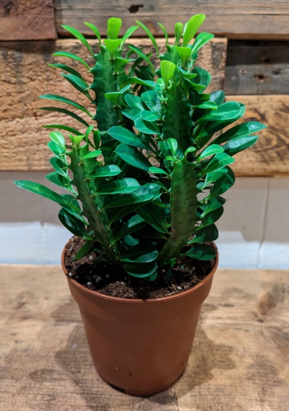 This unique looking plant is actually a succulent native to West Africa but also found in tropical Asia and India. This very distinctive plant has spines along its stems and small leaves that cover the edges of the stems and stalk. The plant is also known as an African Milk Tree which is given due to the milky white sap that comes out when it is cut or broken.